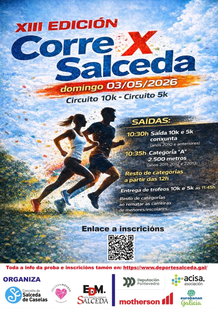 Salceda de Caselas acollerá o vindeiro 3 de maio a XIII edición da Corre X Salceda, unha carreira popular que, ano tras ano, segue a medrar en participación e repercusión, consolidándose como unha das citas deportivas máis destacadas da comarca.